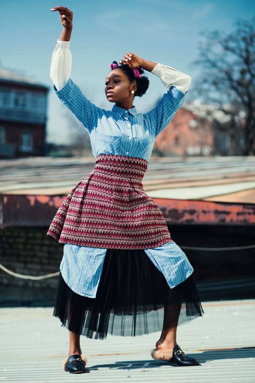woman wearing blue and maroon dress October 9, 2018 • 867 × 1300 Photo by Godisable Jacob on Pexels.com