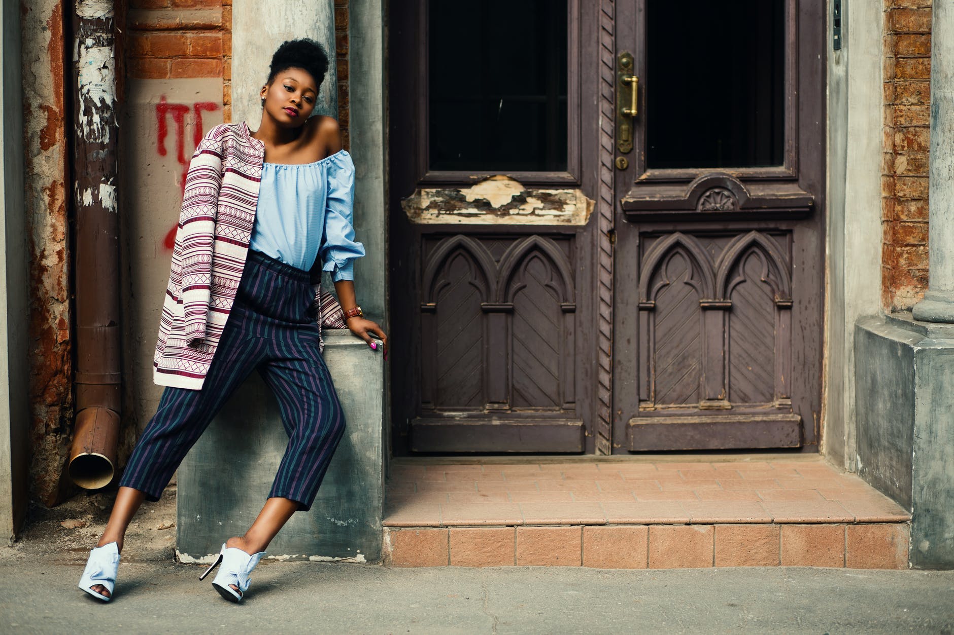 woman wearing blue shirt